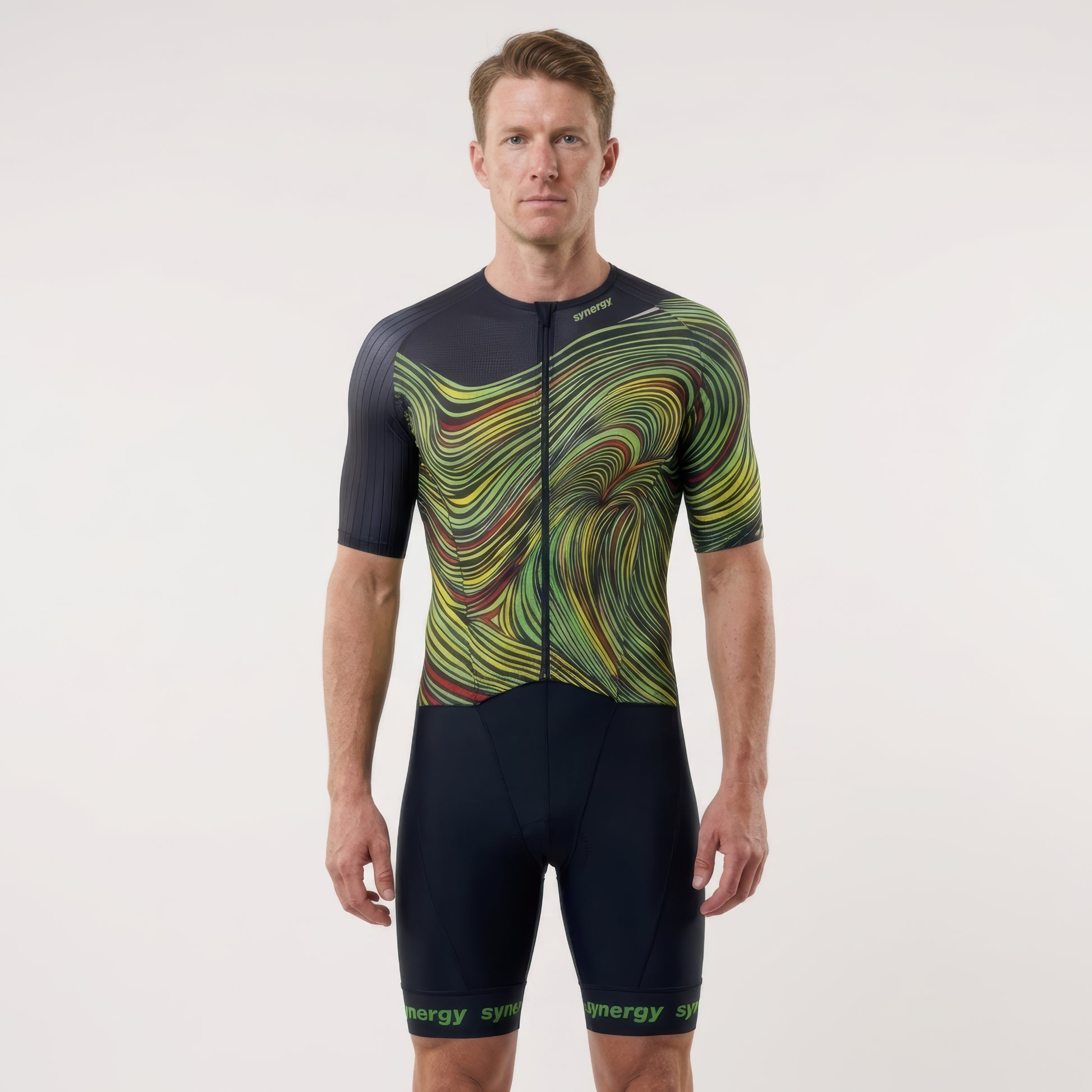 The Men’s Pro 3.0 Short Sleeve Tri Suit - Fusion is engineered for athletes who want a fast, refined race day feel. Designed with aerodynamic, quick drying performance fabric and a streamlined fit, it moves effortlessly through every leg of the race. Thoughtful details like the full front zipper, thin premium pad, silicone leg grippers, and rear mesh pockets deliver comfort, support, and utility without excess. Clean, technical, and built to perform, this is a suit made to race hard and look sharp doing it.